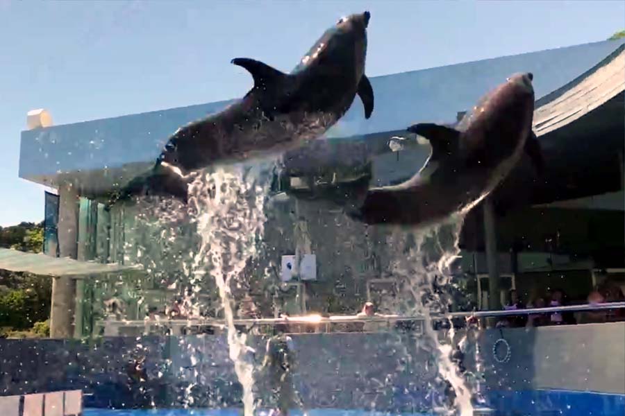 イルカショーは狭いプールだったので